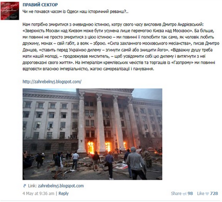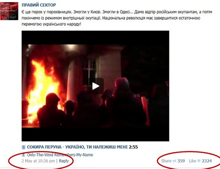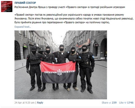 Vu qu'elle est membre de Pravy Sector, voyons un peu les publications de ce groupe dont elle est membre.