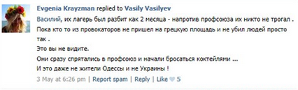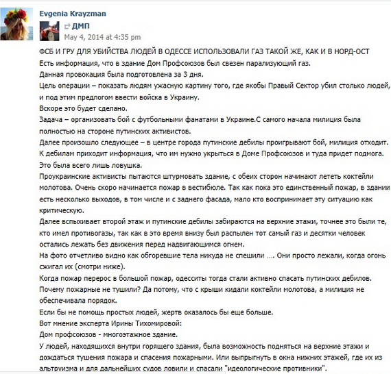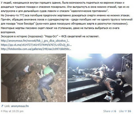Et cette tarée mentale nous explique tranquillement que les morts d'Odessa n'ont pas essayé de s'enfuir, soit disant ils se seraient sacrifiés.