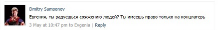 traduction : tu te réjouis que des gens soient brûlés vifs? Tu mérites d'être en camp de concentration.