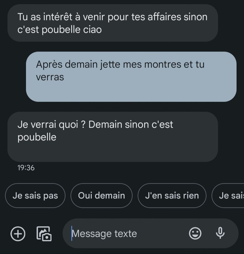 D'ailleurs le message que j'ai caché elle disait " tu peux faire un sujet sur moi sur ton forum j'en ai rien à foutre"
