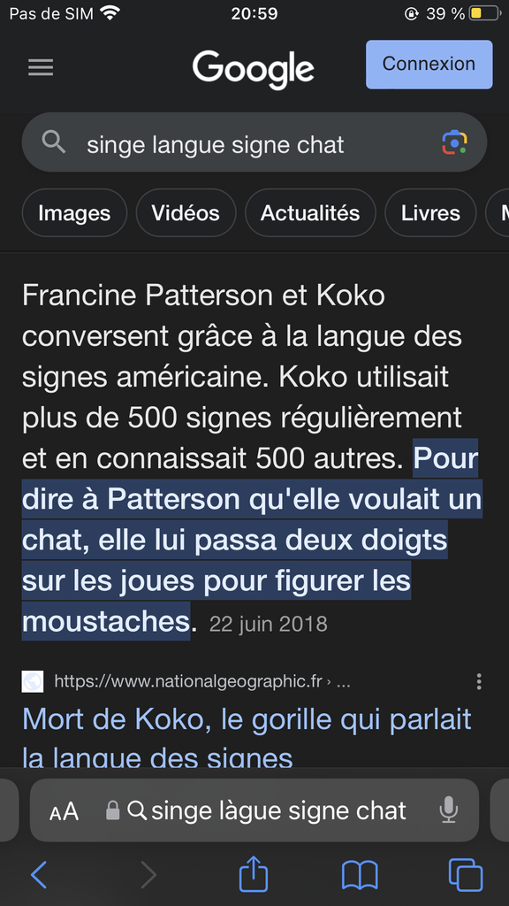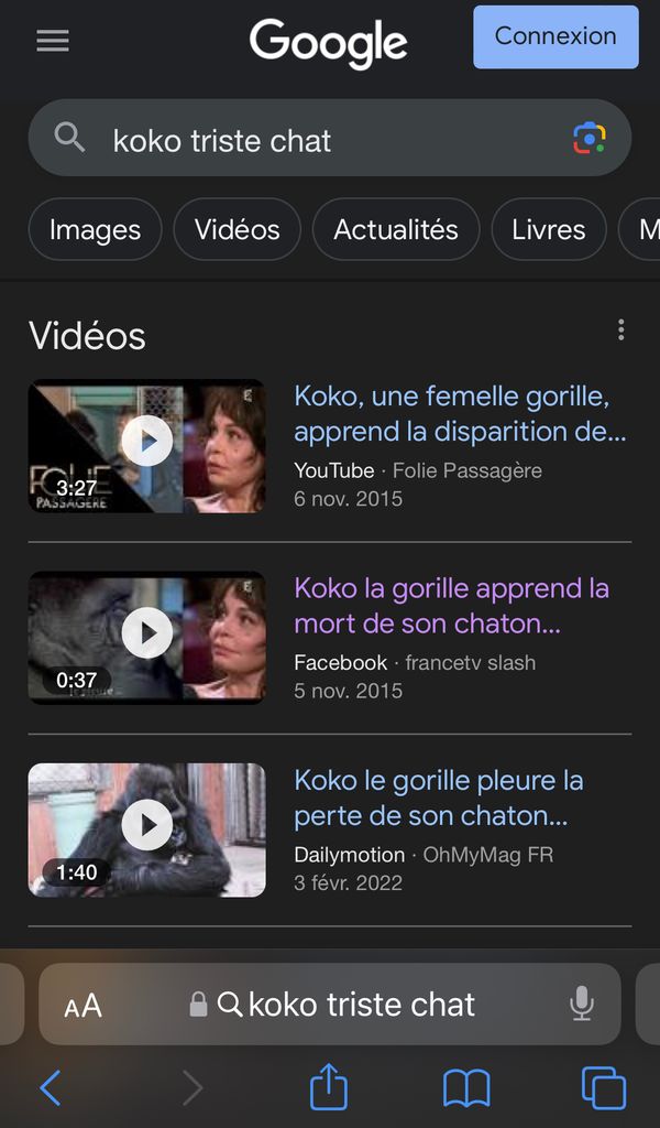 On la tjr pas trouvé mais apparemment c'est koko le gorille qui apprends qu'il va mourir avec une vidéo triste derrière