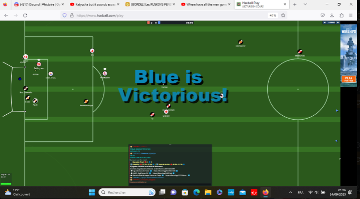 4 juin 2023 : 7 haxball 11 v 11 italien an AnthonyA perd 2 fois puis gagne 5 fois d'affilée