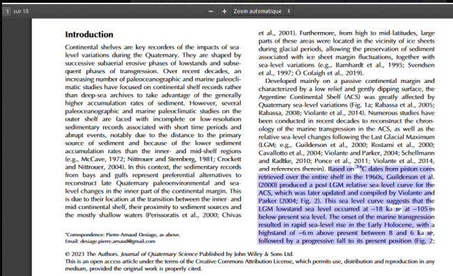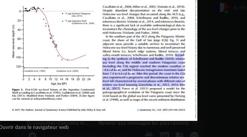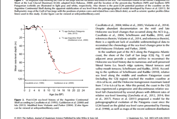 Sur le sujet : LatePleistoceneandHolocenetransgressioninferredfromthesedimentsof the Gulf of San Jorge, central Patagonia, Argentina