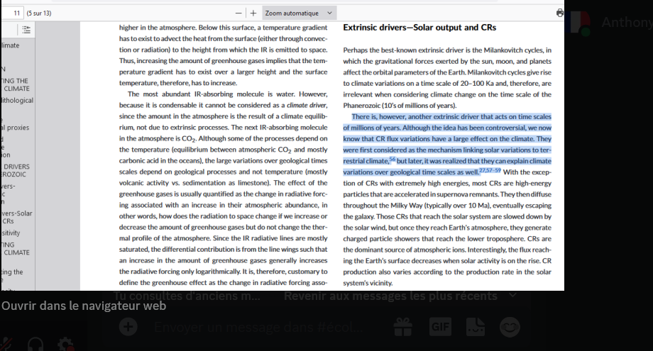 Les variations d'un million d'années de la couverture nuageuse modulant les rayons cosmiques (CR) sont l'une des causes dominantes si ce n'est la cause dominante des variations climatiques sur un million d'années, expliquant les 7 époques glaciaires.