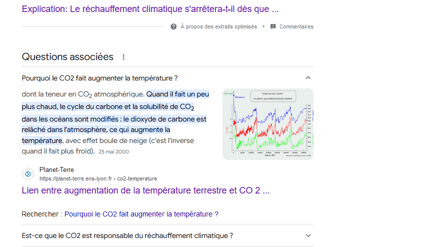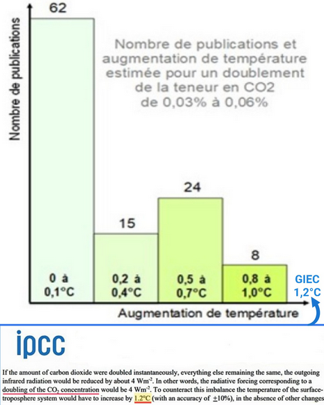 Pour le GIEC, on dépasse largement les 1 degrés alors que peu de publications expliquent qu'un doublement de la teneur de CO2 de 0,03 à 0,06% fait passer la température de entre 0,8 et 1 degré.