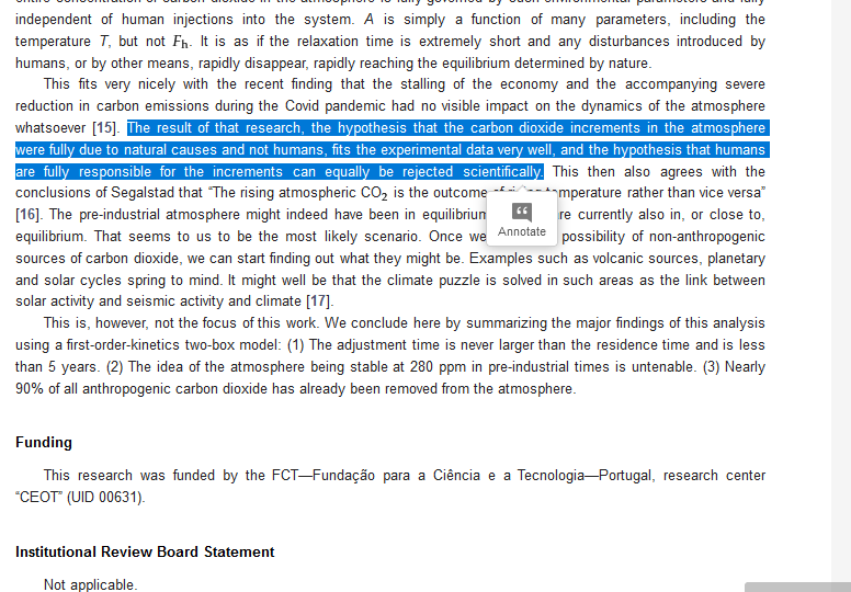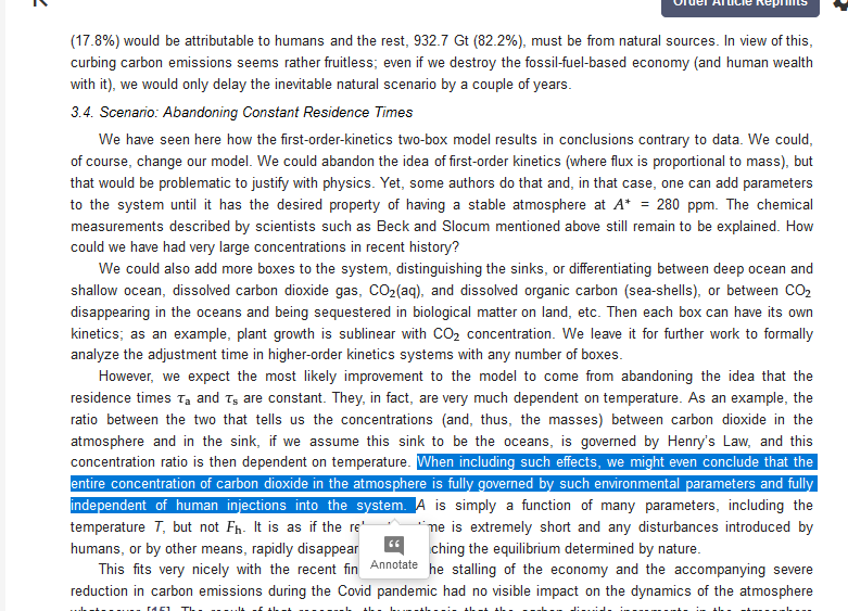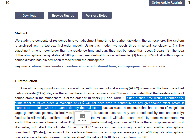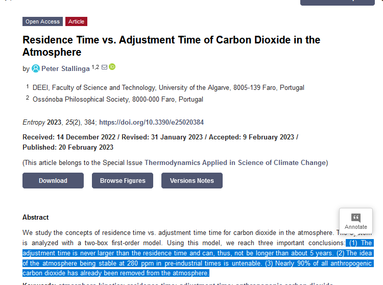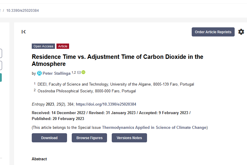 Publié dans le MDPI sur le sujet : Residence Time vs. Adjustment Time of Carbon Dioxide in the Atmosphere