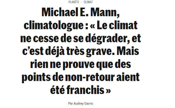 Le Monde lui a également accordé une tribune dans lequel il admet qu'aucun élément ne permet d'affirmer qu'il y a des points de non retour qui ont été franchies.