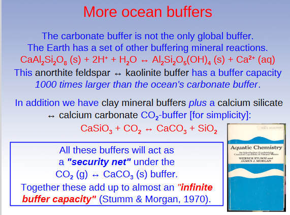 De plus, le CO2 a une capacité thermique spécifique inférieure à celle du N2 ou de l'O2, ces derniers qui constituent 99 % de l'atmosphère, contre 0,04 % pour le CO2. Cela signifie qu’une atmosphère avec une concentration plus élevée de CO2 peut contenir moins d’énergie thermique à une température donnée, pas plus, et peut donc faire fondre moins de glace ou réchauffer moins les eaux océaniques (en supposant qu’elles soient considérablement réchauffées).