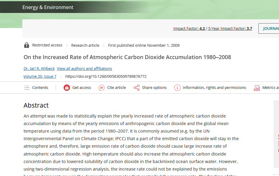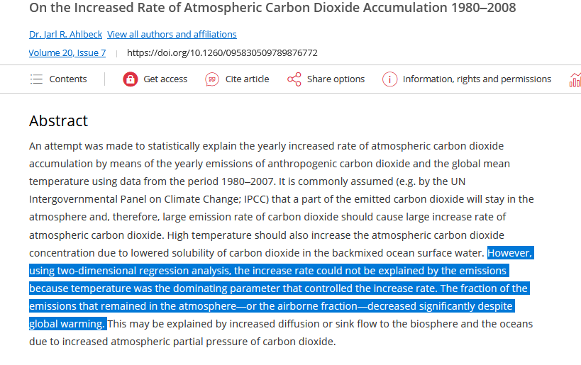publié sur le sujet : On the Increased Rate of Atmospheric Carbon Dioxide Accumulation 1980–2008 par Dr. Jarl R. Ahlbeck en 2009.