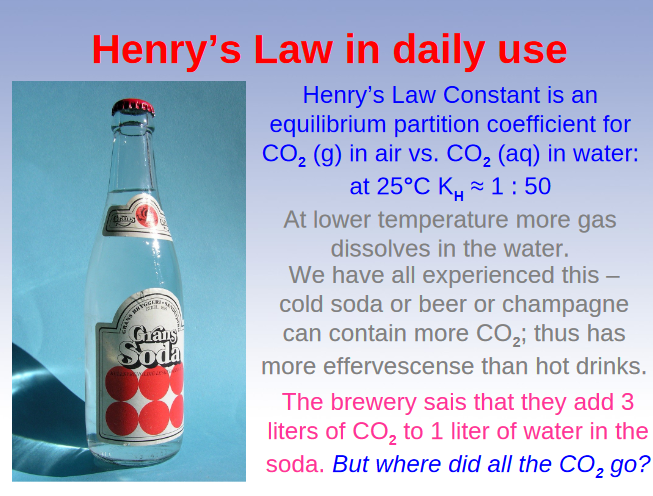 La loi d'Henry sera importante pour la suite de l'explication générale.