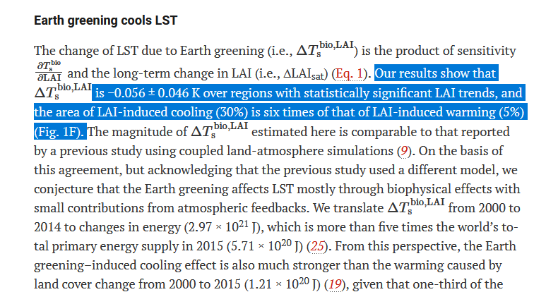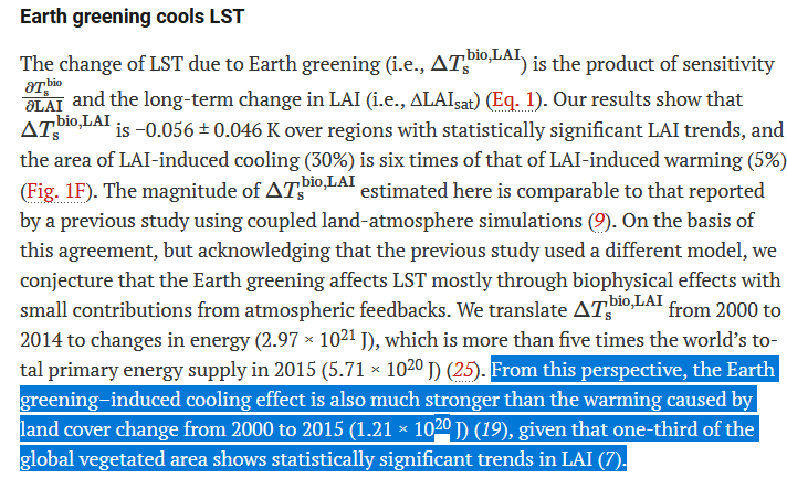 Dans cette étude certaines phrases sont particulièurement importantes là aussi : Earth satellites have observed continuous increasing vegetation growth during the past four decades, a phenomenon called Earth greening.