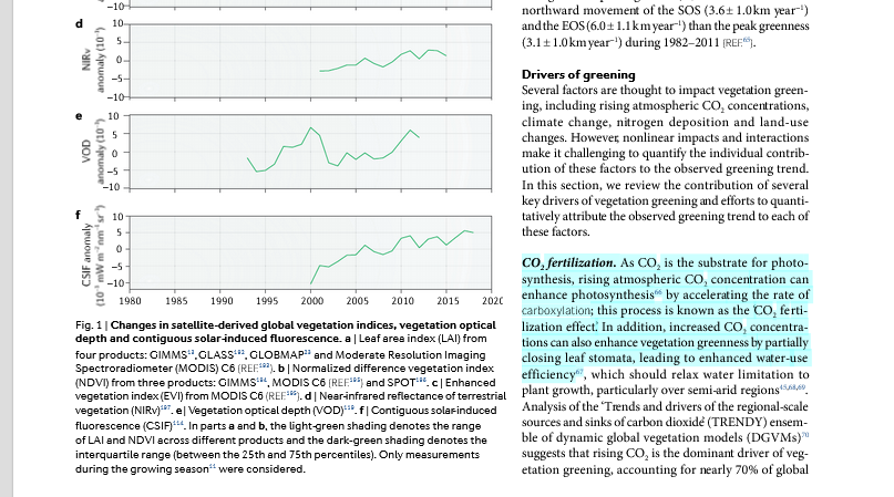 Il faut également savoir que la fertilisation au CO2 verdit la terre. Le verdissement amène quant à lui, au refroidissement.