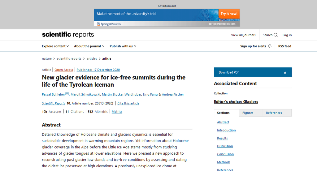 Sur le sujet : New glacier evidence for ice-free summits during the life of the Tyrolean Iceman