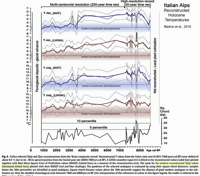Pour revenir à l'étude paru dans nature, on voit que les températures dans les Alpes orientales étaient supérieures au début de l'Holocène qu'aujourd'hui.