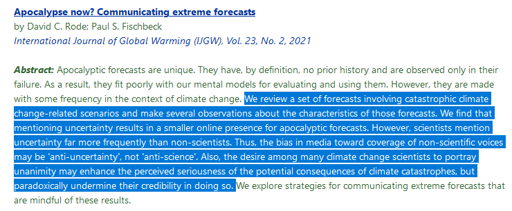 “and observing a string of repeated apocalyptic forecast failures can undermine the public’s trust in the underlying science.”