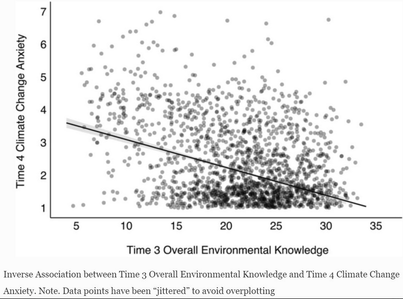 Concrètement ce que l'on constate c'est que les connaissances environnementales sont inversement associées à l'anxiété face au changement climatique