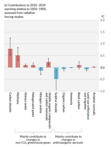 Malgré ces faits présentés émanant de leur théorie radiative, il est en effet estimé par le GIEC que l’augmentation des niveaux de CH4 dans l’atmosphère (0,00017% à 0,00019%) a contribué à hauteur de 0,5°C au réchauffement climatique et ce depuis la période de1850-1900.