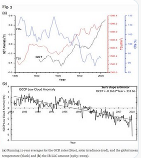 “L’activité solaire et le champ magnétique augmentent de 56%, ce qui empêche le GCR d’atteindre l’atmosphère de 19% et, par conséquent, le GST augmente - expliquant en partie le réchauffement d’environ 0,5°C enregistré entre 1950 et 2016.”