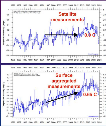 L'enregistrement de la température de surface a été manipulé presque au-delà du raisonnable. Ils appliquent depuis des décennies des «ajustements» visant à faire en sorte que la température mondiale suive le record officiel de CO2, qui est lui-même une simulation de modèle.