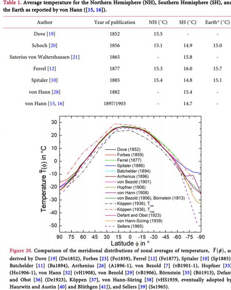 sur le sujet : Meridional Distributions of Historical Zonal Averages and Their Use to Quantify the Global and Spheroidal Mean Near-Surface Temperature of the Terrestrial Atmosphere