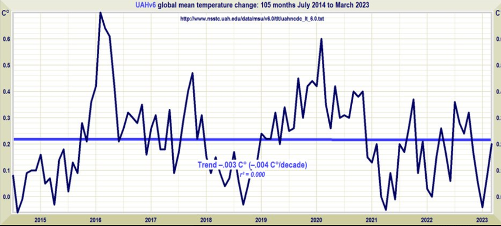 Depuis juillet 2015 au moins soit 8 ans, la température est même très légèrement en baisse.