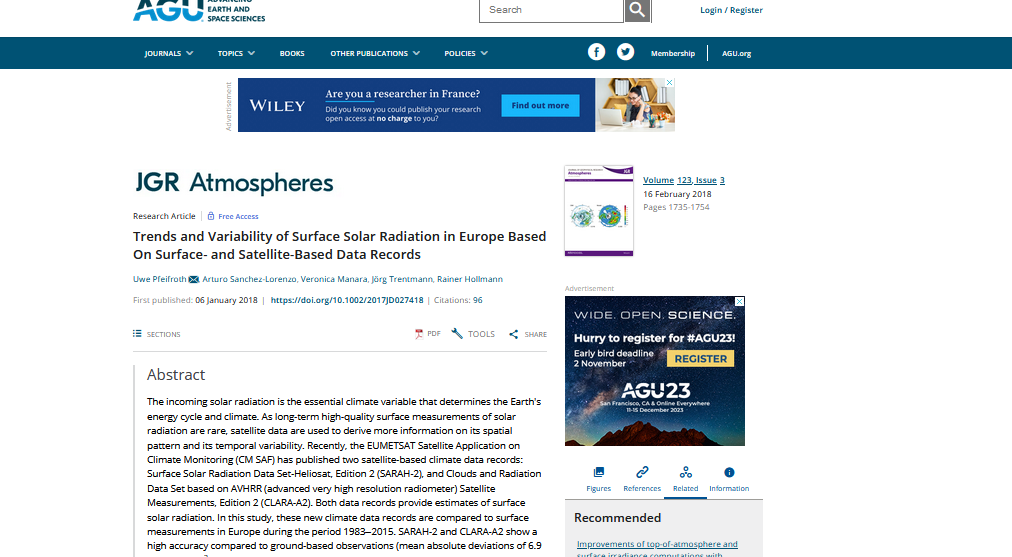 publié dans l'AGU par Uwe Pfeifroth, Arturo Sanchez-Lorenzo, Veronica Manara, Jörg Trentmann, Rainer Hollmann
