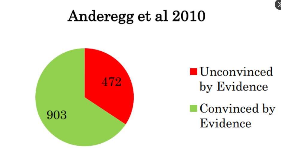 Anderegg et al (2010) ont trouvé le chiffre de 66% de convaincus par les ' preuves '
