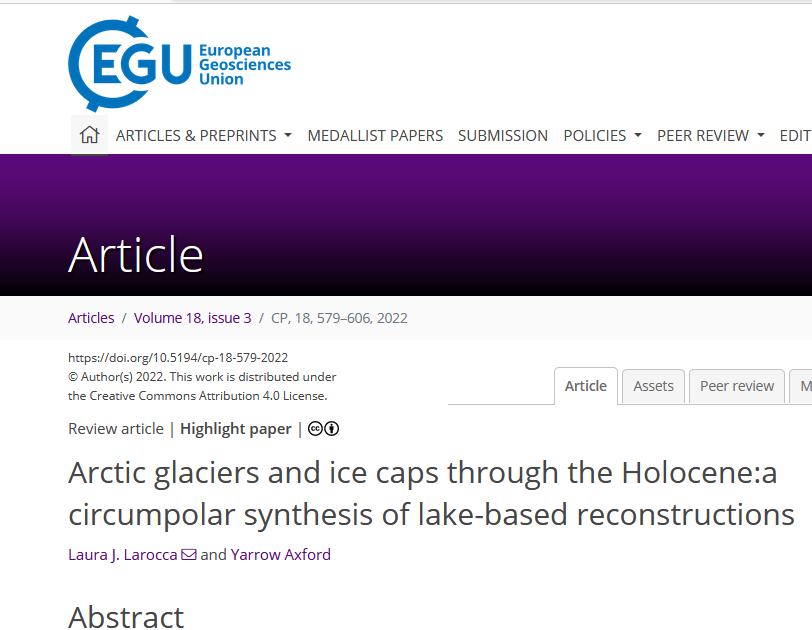 Publié sur le sujet : Arctic glaciers and ice caps through the Holocene:a circumpolar synthesis of lake-based reconstructions