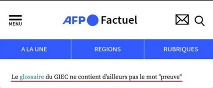 D'ailleurs même l'AFP a du admettre que le glossaire du GIEC ne contient pas le mot preuve.