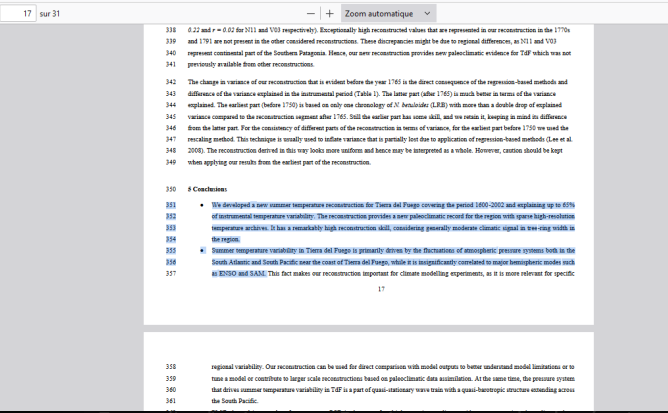 sur le sujet : Summer temperature changes in Tierra del Fuego since AD 1765: atmospheric drivers and tree-ring reconstruction from the southernmost forests of the world