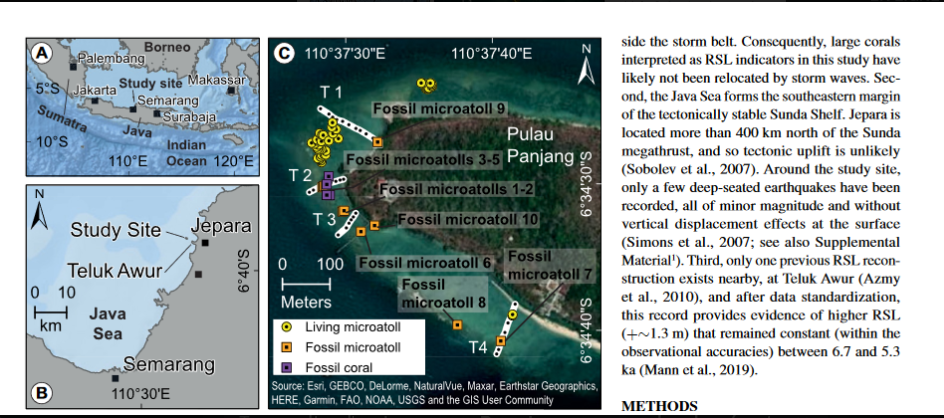 microatolls) indicate that the Java Sea experienced a relative sea level of 1.3 ± 0.7 m above