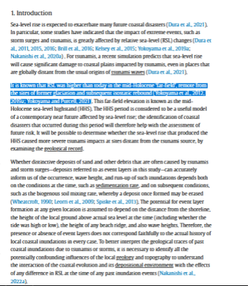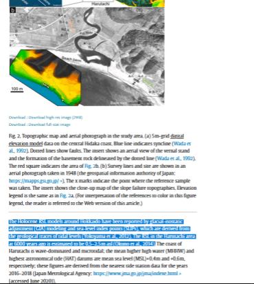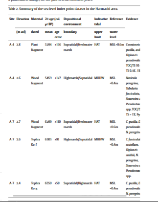 "The RSL in the Harutachi area at 6000 years ago is estimated to be 0.5–2.5 m asl (Okuno et al., 2014)."