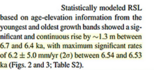 1.0 ± 0.3 m above present at 6.7 ± 0.1 ka to 1.9 ± 0.3 m above present at 6.4 ± 0.1 ka. The end