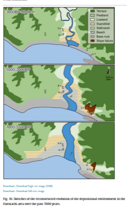 Il y a 4 000 ans, le niveau de la mer au Japon était de « 4 à 5 m d'altitude [au-dessus du niveau de la mer actuel] avant de tomber à 1,0 à 1,5 m d'altitude » il y a environ 1,5 000 à 1 000 ans.