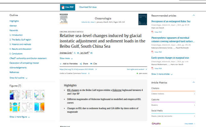 Publié dans ScienceDirect sur le sujet : Relative sea-level changes induced by glacial isostatic adjustment and sediment loads in the Beibu Gulf, South China Sea par Andreas Groh et Jan Harff