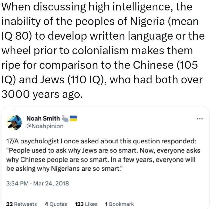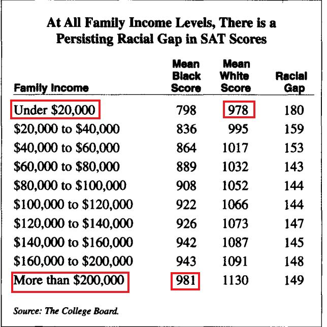 Ils ne s'en foutent pas. Regarde le tableau des noirs us qui gagnent +200k a l'année (qui ont donc beaucoup plus de chances de reussir que pres de 85% de la pop us) qui scorent PAREIL que les blancs les plus PAUVRES