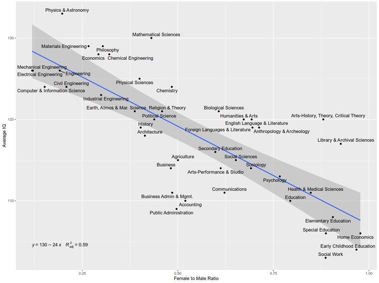 Pour ceux que ça interesse : les etudes en facs americaines classées par le QI moyen des etudiants et le ratio homme/femme