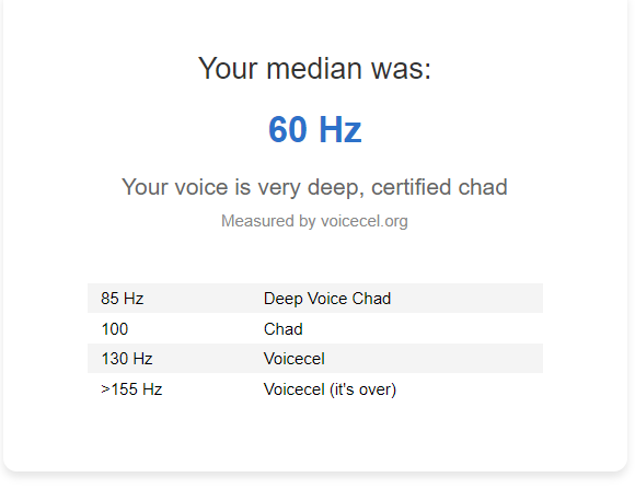 pourtant je n'arrive pas du tout à faire une voix aiguë même en forçant, je ne pense pas que ce soit très fiable ton test l'op