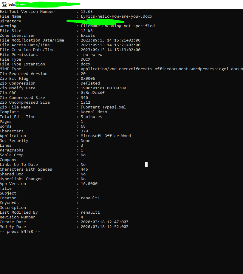 Non justement comme nightcore le dit y'a juste le chemin du fichier quand tu regarde via exiftool, pas le nom du PC/proprio (en tout cas pour les fichiers .txt/odt) et moi comme un zinzin j'ai cru que ça l'incluait