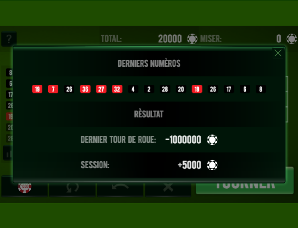 (la plupars des roulettes en ligne sont truquées, en particulier les versions gratuites qui servent à appâter les clients de casinos en ligne, cette version que je propose ici n'est pas faussée.)