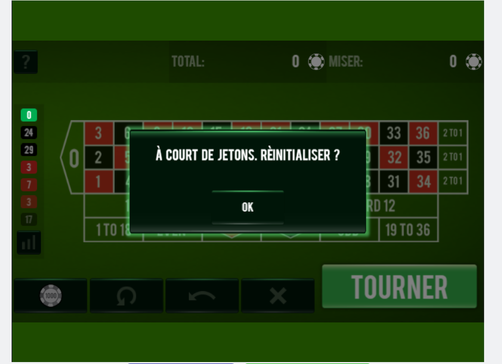 bon, je me suis fait violer par la roulette, j'ai du perdre autour de 20 fois