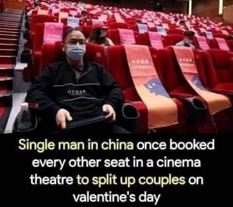 ce khey celib qui loue deux sieges sur 3 pour séparer les couples pendant la St Valentin