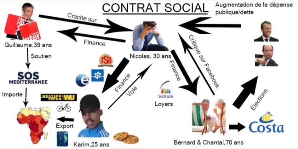 la moitié de ton salaire qui part dans la poche de nos chers retraités pour qu'ils puissent bouffer au resto 3 fois par semaine