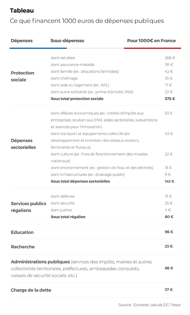 Sur 1000 euros de dépenses publiques, les retraites représentent 268 euros, soit 4.46 fois que les services régaliens, soit 12 fois plus que les solidarités comme le rsa+prime d'activité