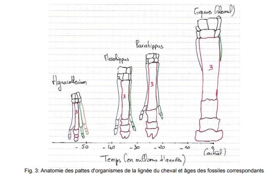 La figure 3 montre, chez les organismes fossiles de la lignée du cheval, une croissance de plus en plus