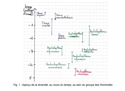 Il ressort des données de la lignée humaine que, au cours du temps, des espèces apparaissent puis disparaissent, prouvant que le monde vivant n'a pas toujours existé tel qu'il est actuellement.
