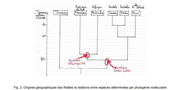 géologiques majeurs (ouverture de l'Atlantique concomitante de la divergence Nandou/Autruche) Ces