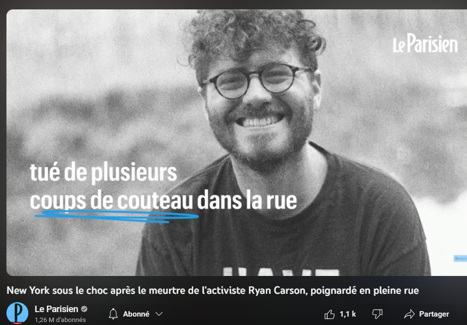 New York sous le choc après le meurtre de l'activiste Ryan Carson, poignardé en pleine rue