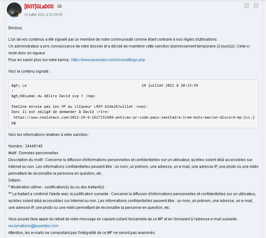 On l'oublie volontairement, mais un bon 50% des 410 c'était des "supprimé par son auteur" pour être recréé aussitôt parce que le topic était en perte de vitesse. Tu trouvais un khey sympa avec qui échanger et l'AW d'auteur vous foutait un 410 parce qu'il avait plus sa dopamine (en plus ils ont même pas la cloche sur jvc...)