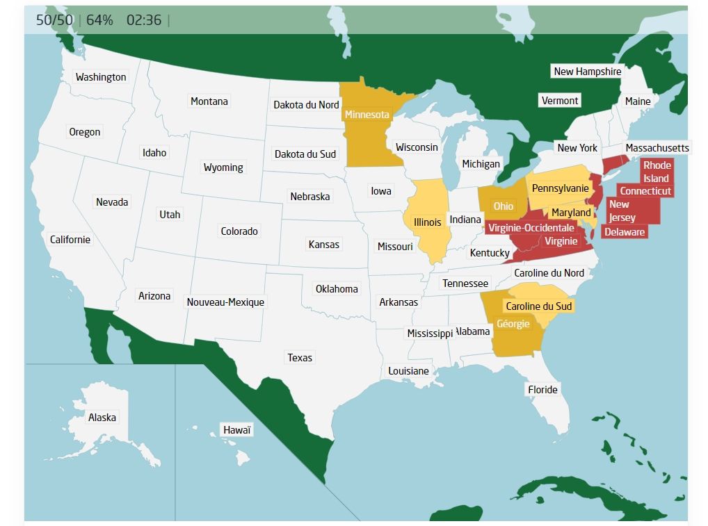 Aucun, j'ai jamais aimé la géographie - Ca m'empêche cependant pas de me souvenir du nom de la majorité des Etats